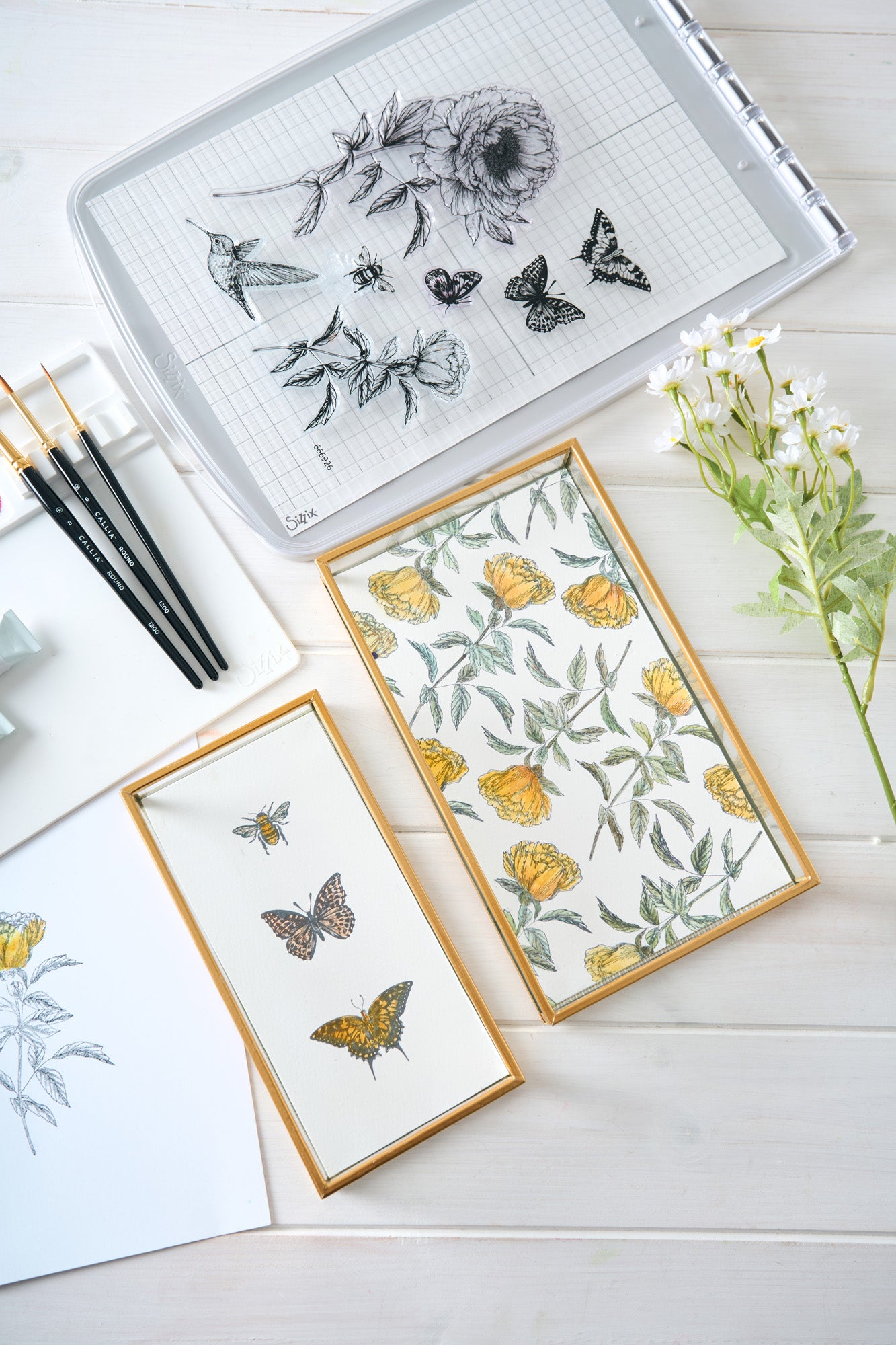 The Sizzix Studio 5x8 Clear Stamp Set 7PK – Flowers & Creatures by Willow Wolfe is a 7-piece clear stamp set designed for use with the Sizzix Registration Press Tool. This set lets you add delicate botanical elements and playful creatures, like butterflies, a bee, and a hummingbird to your creative makes.