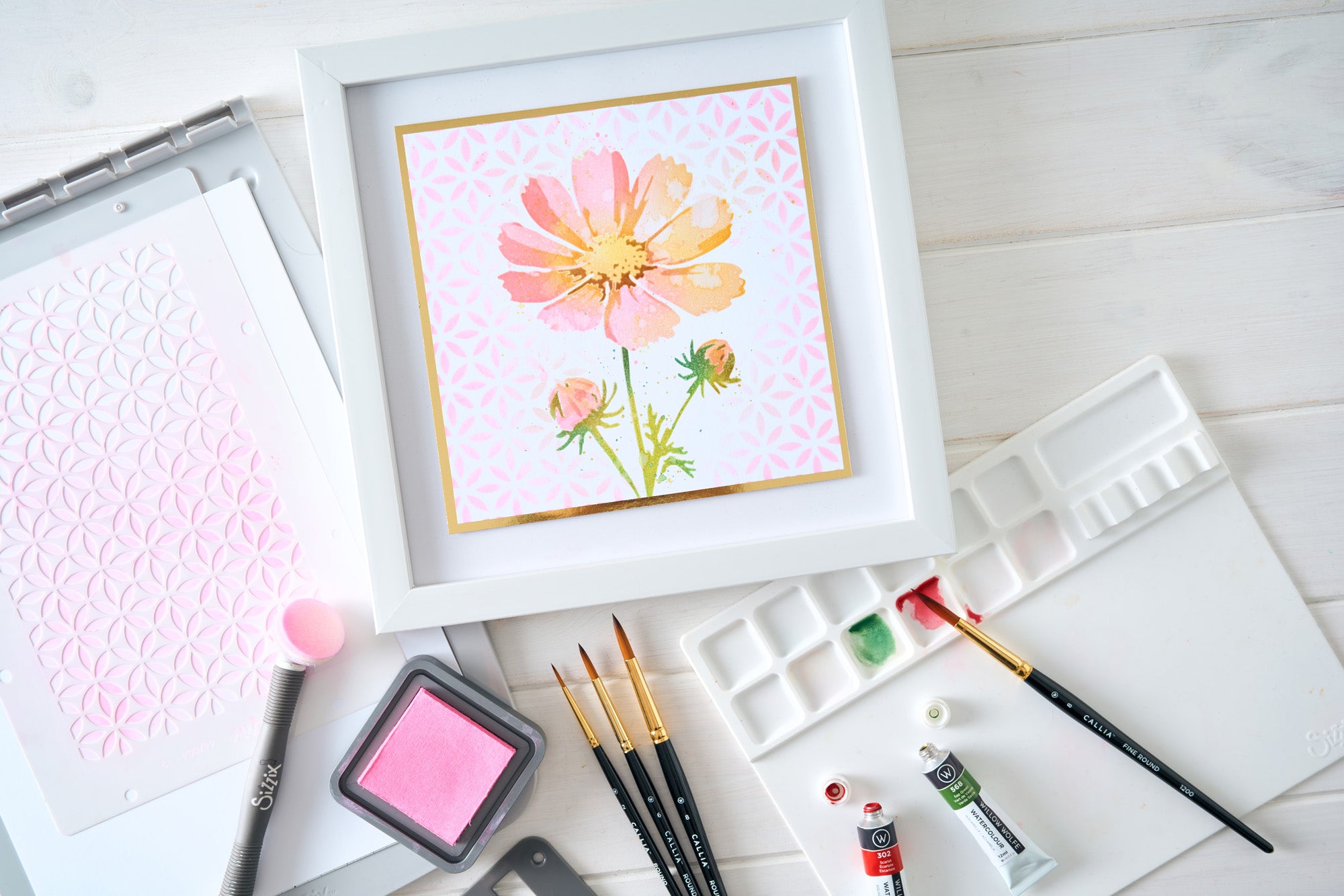 The Sizzix Studio 5x8 Layered Stencils 4PK – Cosmo by Willow Wolfe is a set of four layered stencils designed for use with the Sizzix Registration Press Tool. This set lets you build a layered, dimensional floral design inspired by the graceful form of the cosmos flower.